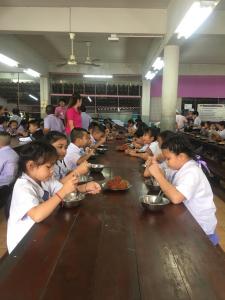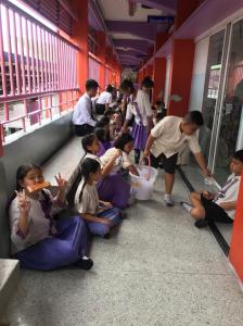 Every Morning, there is Ceremony (30 minutes) before teaching and learning activities begin. Everyday students come to the field at 08.00 when a song is playing for the flag ceremony with sing the national anthem of Thailand, praying and meditation. And comeback to their own class and class start at 8.30 am.