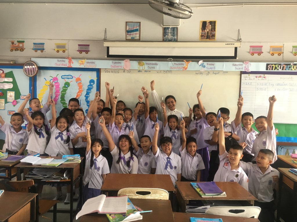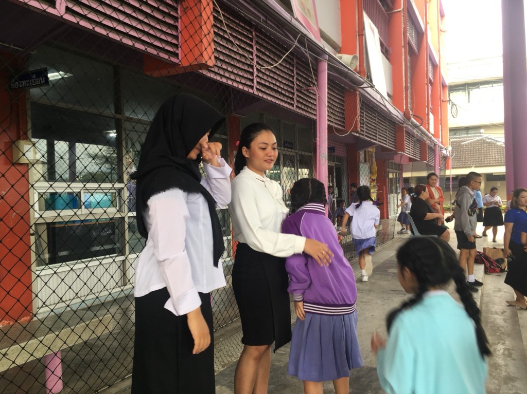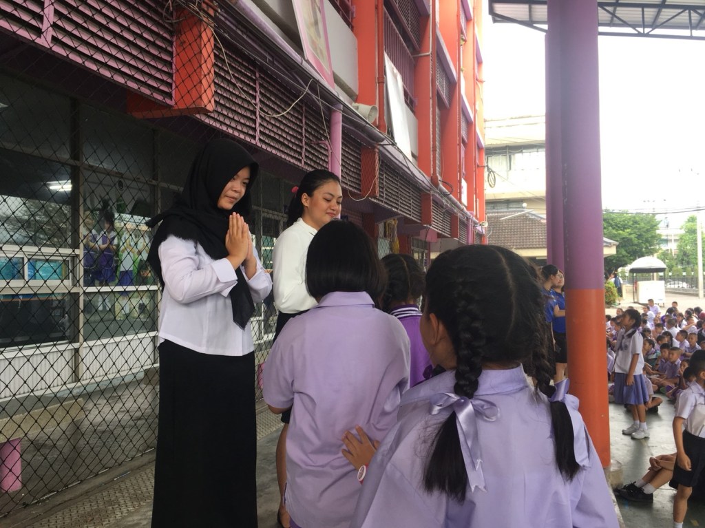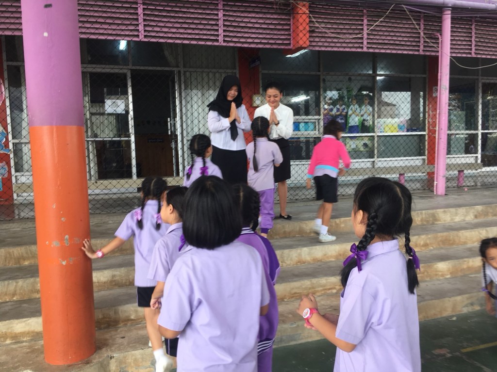 I feel sad today because I will say goodbye to the teacher and students. Begins with the usual flag ceremony, then Khru Ning asked Amanda and me to come forward to convey our impressions while we were here. Really emotional, I cried as I conveyed my impression, especially thanks to this school, to the director, school principal, teachers and students. I’m really grateful to be a part of this school. I apologize for making a mistake against them. I say goodbye, goodbye everyone, I will really miss this school!