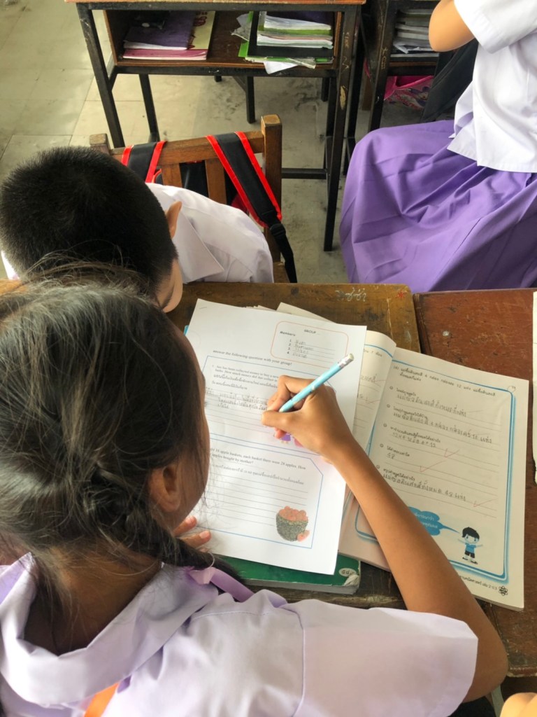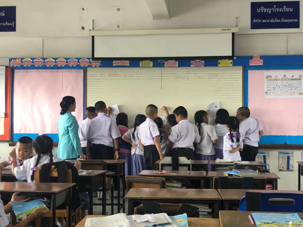 Today is final teaching practice, my supervisor Mrs. Kamophorn Thongthiya will come to assess me. Today i will teach about about problem solving of multiplication . My opening activity is greeting, check attendance of the students, aperception to remind the students again about solving of multiplication table that has been studied , and motivation for students.